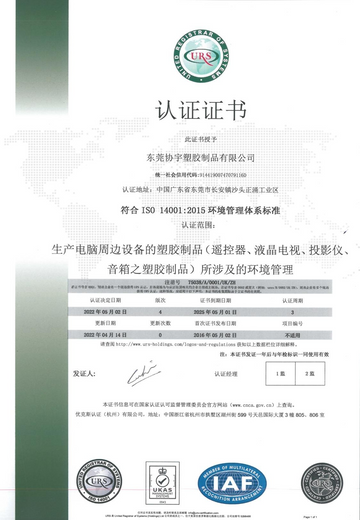 2005年 中國東莞協宇廠ISO14001認證通過。